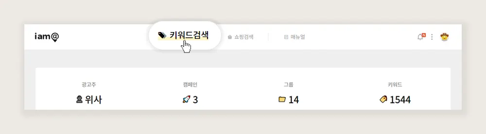 1. 상단 키워드검색 메뉴를 눌러 키워드 검색으로 이동합니다.