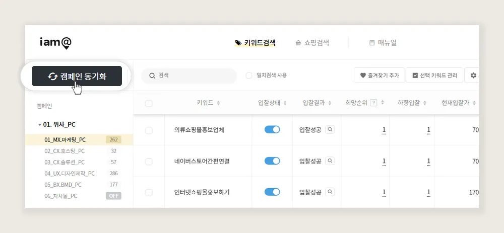 2. 동기화 버튼을 눌러 캠페인과 그룹을 동기화 시킵니다.