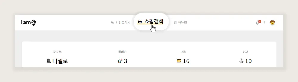 쇼핑 검색 계정 동기화를 위해 상단에서 쇼핑검색을 선택 합니다.