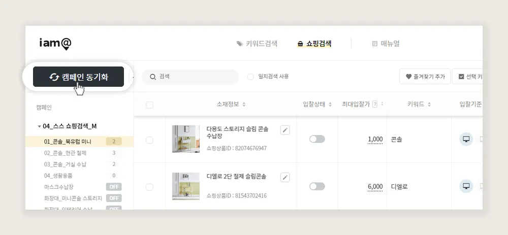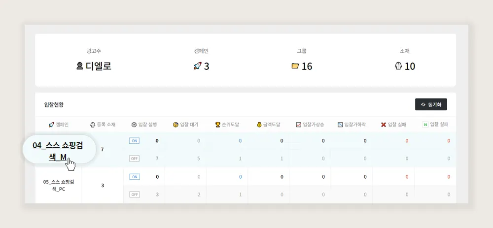4. 캠페인 동기화 버튼을 통해서도 해당 캠페인을 최신 현황으로 동기화 할 수 있습니다.