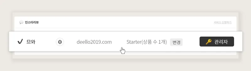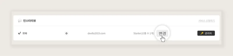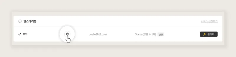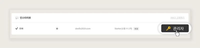 인스타리뷰 솔루션을 이용하기 위해 관리자 버튼을 통해 인스타리뷰 솔루션 관리자로 이동합니다.