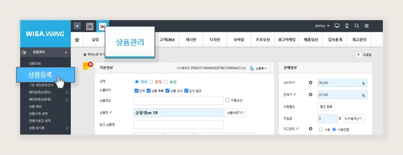 위사윙→ 상품관리→ 상품등록→ PC상품상세설명
